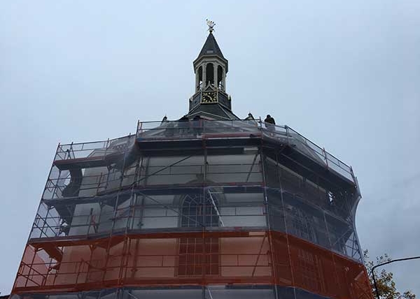Achter de schermen werken de lichtarchitect en technici hard door aan het tot in detail in kaart brengen van de diverse te verlichten objecten en aan het testen van lichtarmaturen. Zo kon men het onderhoud van de buitenmuren van de Dorpskerk aangrijpen om een kijkje op het dak te nemen. De steigers stonden er immers…